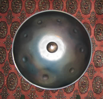 The hang (pronounced hung) is a very new musical sound sensation in the world of musical instruments. It came into being in the year 2000 in Bern, Switzerland. The name 'Hang' literally means hand in the Bernese dialect of Swiss-German. It is hand made out of treated steel and looks very much like a flying saucer. It is played with the hands and fingers and for a hand drummer like myself it is ideal. I have had mine since April, 2004 and I've been really enjoying exploring the instrument's possibilities. There is not any defined technique to playing it. Each person will develop there own unique approach to it.